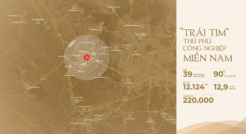 Dự án sở hữu vị trí chiến lược liền kề TP.HCM, ngay sát các thủ phủ công nghiệp – nơi quy tụ lực lượng chuyên gia và lao động kỹ thuật cao.